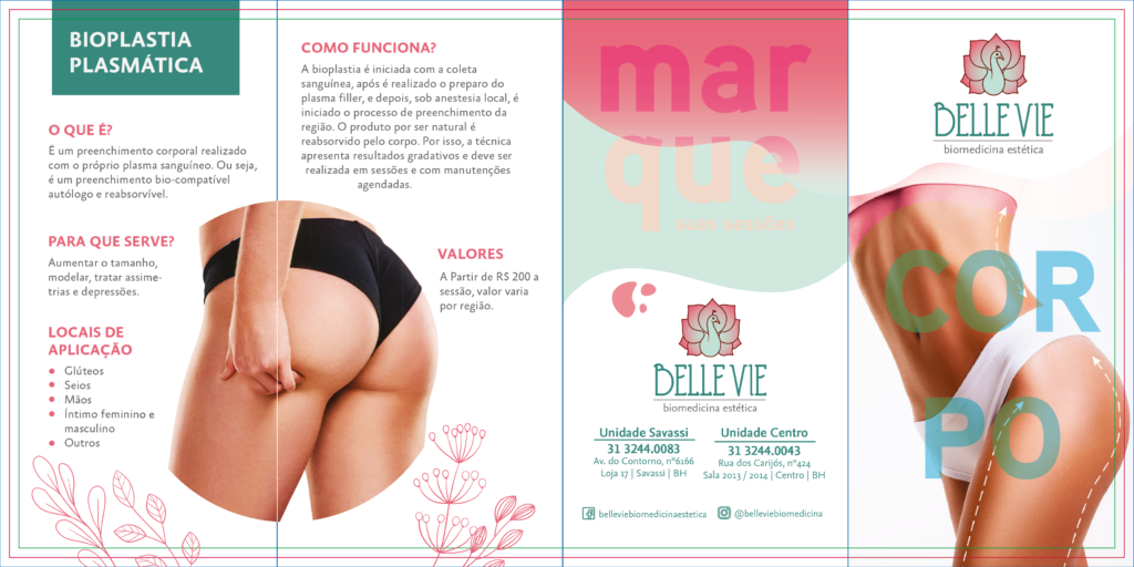 Projeto de toda identidade e materiais gráficos para Clínica BELLE VIE, que acompanha todos impressos, como papelaria, folders e posts para redes sociais.